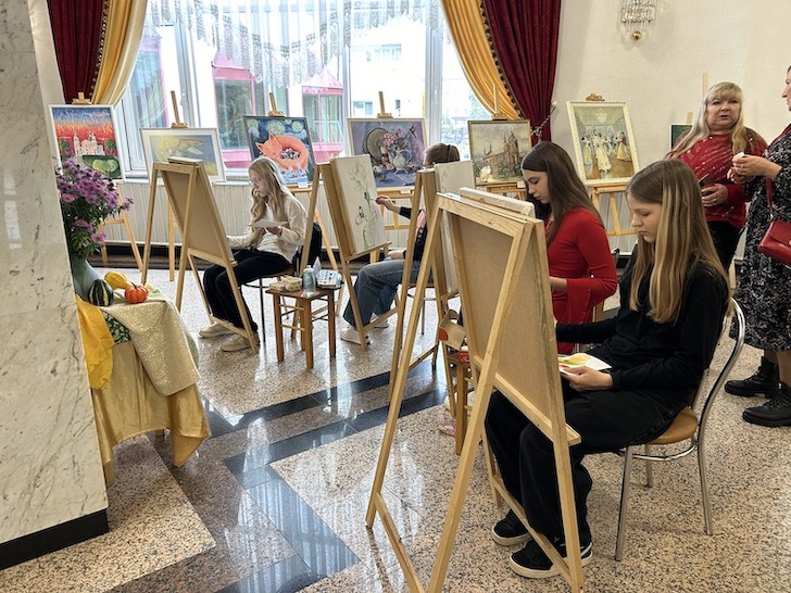 Преподаватели и учащиеся на мероприятии ко Дню культурного работника